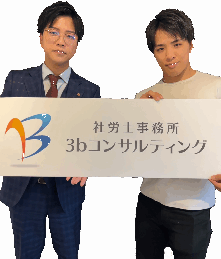 社労士事務所3bコンサルティング 労務相談・申請代行・給与計算などのバックオフィス業務従業員様の雇用に関するお悩みは3bコンサルティングにお任せください お知らせ ホームページリニューアルのお知らせ 令和4年 キャリアアップ助成金変更点 新年度の36協定等の届出ミナー開催のお知らせ Load More お知らせ一覧 About us 私たちについて 事業主 ・ 従業員 ・ 行政 3者間の 『 架け橋 』 となる 事業主・従業員・行政は密接な関係にあります。企業は従業員を雇用する上で行わないといけない手続きや届出も多く、関連する法令は毎年のように改正されます。これらの手続きを正確に行わないと労使双方に不利益が生じ、本来掛けなくて良い費用や労力を費やすことになりかねません。当事務所では申請代行を正確・迅速に行い、本来生まなくて良いトラブルを未然に防止するとともに、従業員様が働きやすい職場環境を形成することで、顧問先企業様の利益創出をご支援いたします。 ABOUTを見る 経営者様のお悩みは当事務所の悩み 日々の事業活動の中で 『人』 に関するお悩みは尽きないものです。事業が拡大し、従業員数や事業所の数が増えれば守らなければならない法令や労使トラブルも増加します。しかし、それらの問題解決は優秀な人材がその能力を充分に発揮できる環境整備、ひいては事業の利益創出に必要不可欠です。当事務所は人事労務の専門家として 『人』 に関する問題を解決することで、従業員様が生き生きと働ける環境を整備し、経営者様に本来の事業活動にご注力いただけるよう全力でサポートいたします。 PRICEを見る 挑戦する人を、支える力に。 総合格闘家・征矢 貴選手とスポンサー契約を締結。 3bコンサルティングは、「挑戦する人と企業を支える存在でありたい」という理念のもと、総合格闘家・征矢 貴(そや たかき)選手とスポンサー契約を締結いたしました。日々限界に挑み続ける征矢選手の姿勢は、私たちが大切にする“成長を支える”という想いと重なります。社労士として、企業と働く人の挑戦を支えるように、スポーツの世界でも全力で応援してまいります。これからも、努力を重ねるすべての人々が輝ける社会の実現に貢献していきます。 Xアカウントを見る Mission ミッション 01 経営者様の頼れるパートナーであり続ける 02 時代の変化に対応し、新たなご提案・情報発信を続ける 03 快適な職場環境の形成、事業の利益創出に貢献する Service サービス 労務・社会保険法律顧問 経営者様のお悩みで上位に上がるのが、従業員に関する問題です。無断欠勤や遅刻が多い社員、違反行為を行う社員など、従業員が増えればその分問題も増えてしまいます。解雇・残業代・減給などは労働諸法令の専門家である社労士にご相談ください。 労務・社会保険各種手続き代行 従業員を採用する場合、会社が行わなければならない手続きや届け出は数多くあります。従業員の住所変更、昇給や休職、ケガや病気などの際に会社が手続きを行うことは継続的に発生します。従業員様に関する煩雑な手続きは、全て当事務所へお任せください。 助成金補助金申請 雇用調整助成金をはじめとする厚生労働省が実施する「雇用」に関する助成金申請は社労士の独占業務です。助成金は制度が複雑かつ受給に必要な書類が非常に多くあります。当事務所は着手金ゼロの完全成功報酬型ですので、まずはお気軽にご相談ください。 就業規則・社内規定作成・届出 就業規則やその他規程は会社の中のルールブックです。組織が大きくなってから整備するのではなく、従業員が少ない会社ほど整備しておく必要があります。当事務所ではヒアリングを徹底的に行い、時間をかけて御社の実態に合った規則をオリジナルでカスタマイズします。 給与・賞与退職金計算 給与を正確に計算し支払うことは、従業員様の安心と信頼に繋がります。日割りや休日出勤・残業代の計算などは関係法令を熟知していないと必ず計算ミスが発生します。専門家にアウトソースする方が正確に計算可能ですので、内製化されている企業様は、ぜひ一度ご検討ください。 労基署調査是正勧告対応 近年労基署や年金事務所の事業所調査の件数は増加しております。働き方改革による従業員のコンプラ意識の向上により、退職社員の申告などで労基署から出頭を命じられることもあります。事前準備から当日立ち合い、事後処理まで当事務所にお任せください。 詳しくはこちら